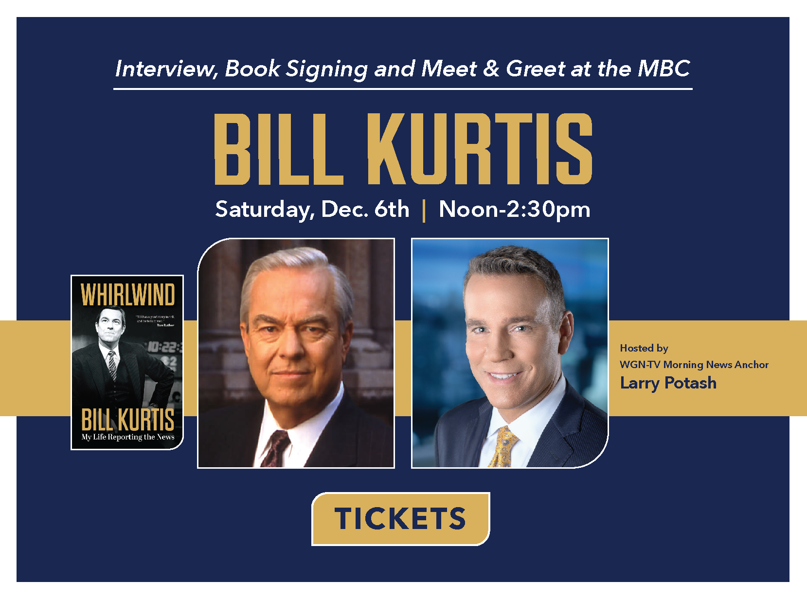 Join us THIS SATURDAY at Noon for a special appearance by Bill Kurtis, hosted by WGN Morning News’ very own Larry Potash! Enjoy a Q&A, Whirlwind book signing, meet & greet — and explore our newest exhibits at the Museum of Broadcast Communications. Regular admission applies.